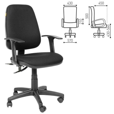 Кресло оператора СН 661 с подлокотниками, черное 15-21, 1182994