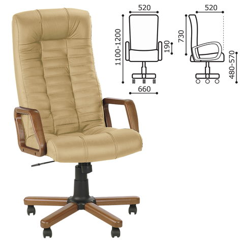 Кресло офисное "Atlant extra", кожа, дерево, бежевое