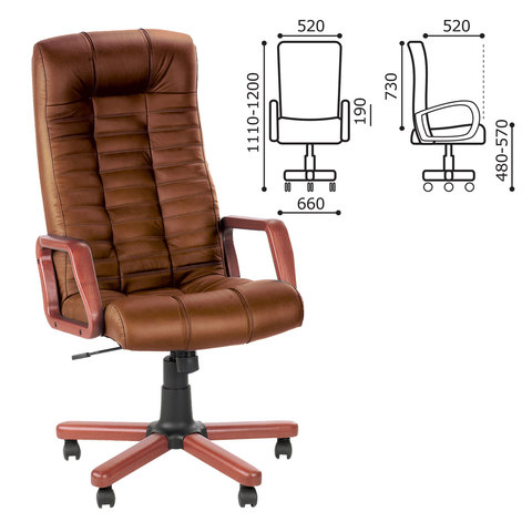 Кресло офисное "Atlant extra", кожа, дерево, коричневое