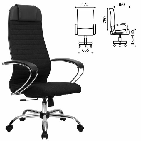 Кресло офисное МЕТТА "К-27" хром, ткань, сиденье и спинка мягкие, черное