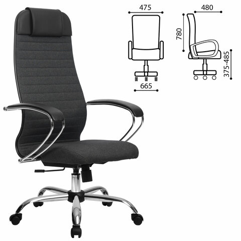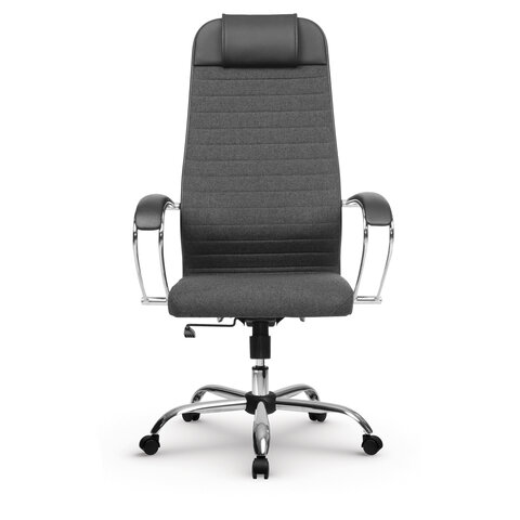 Кресло офисное МЕТТА "К-27" хром, ткань, сиденье и спинка мягкие, серое