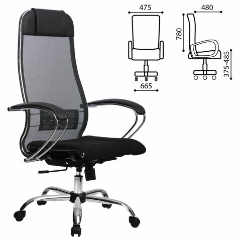 Кресло офисное МЕТТА "К-3" хром, ткань-сетка, сиденье и спинка регулируемые, черное