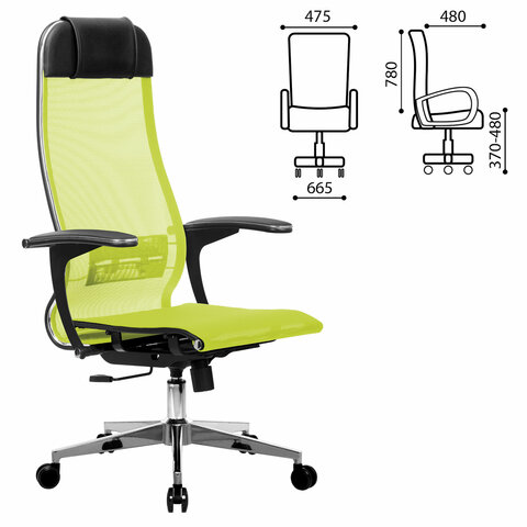 Кресло офисное МЕТТА "К-4-Т" хром, прочная сетка, сиденье и спинка регулируемые, светло-зеленое