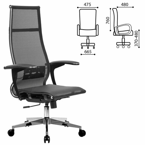 Кресло офисное МЕТТА "К-7-Т" хром, прочная сетка, сиденье и спинка регулируемые, черное