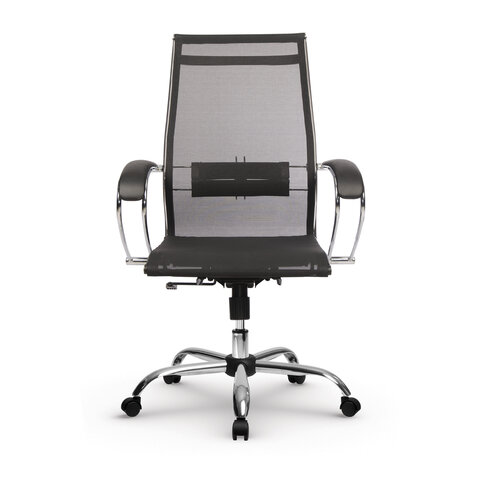 Кресло офисное МЕТТА "К-9" хром, прочная сетка, сиденье и спинка регулируемые, черное