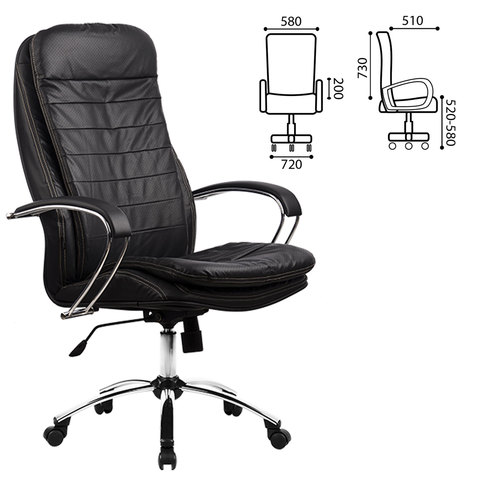 Кресло офисное МЕТТА "LK-3CH", кожа, хром, черное
