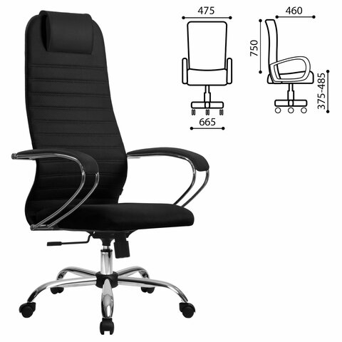 Кресло офисное МЕТТА "SU-B-10" хром, ткань-сетка, сиденье и спинка мягкие, черное