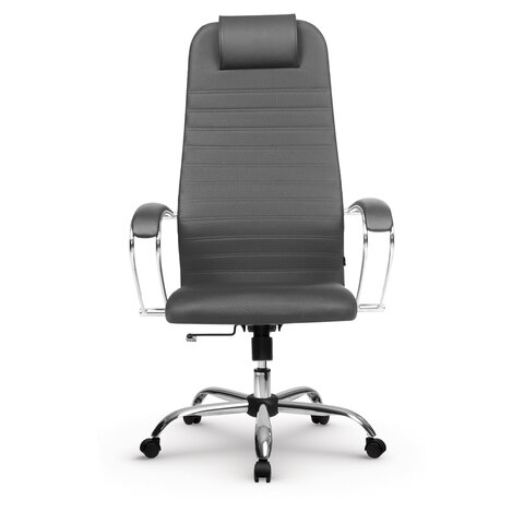 Кресло офисное МЕТТА "SU-B-10" хром, ткань-сетка, сиденье и спинка мягкие, темно-серое