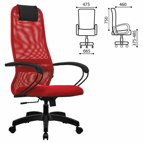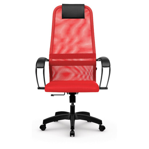 Кресло офисное МЕТТА "SU-B-8" пластик, ткань-сетка, сиденье мягкое, красное