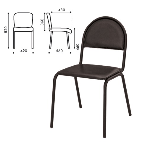 Стул для персонала и посетителей "ИЗО", черный каркас, кожзаменитель черный