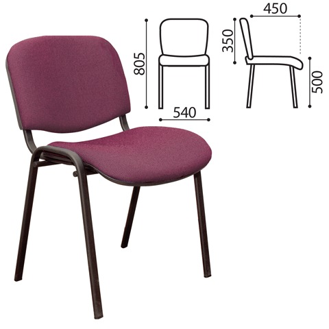 Стул для персонала и посетителей "ИЗО", черный каркас, ткань черно-бордовая, В-20