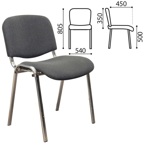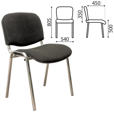 Стул для персонала и посетителей BRABIX Iso CF-001, хромированный каркас, ткань черная, 531419