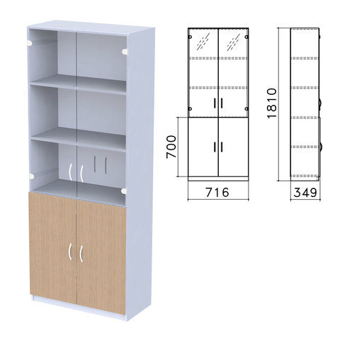 Шкаф закрытый со стеклом "Бюджет", 716х349х1810 мм, дуб шамони светлый (КОМПЛЕКТ)