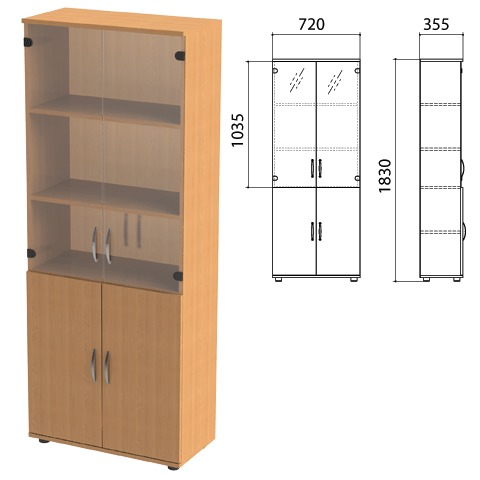Шкаф закрытый со стеклом "Эко", 720х355х1830 мм, цвет бук бавария (КОМПЛЕКТ)