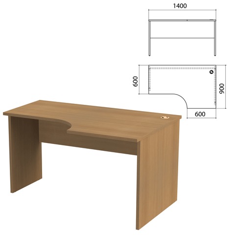 Стол письменный эргономичный "Этюд", 1400х900х750 мм, правый, орех онтарио (КОМПЛЕКТ)