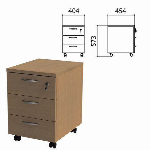 Тумба подкатная "Этюд", 404х454х573 мм, 3 ящика, замок, орех онтарио, 402764-160