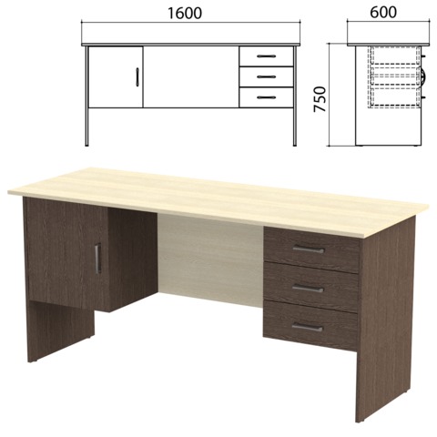 Стол письменный "Канц", 1600х600х750 мм, 2 тумбы, комбинированный, цвет дуб молочный/венге (КОМПЛЕКТ)