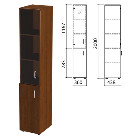 Шкаф закрытый со стеклом "Приоритет", 360х438х2000 мм, 4 полки, ноче милано (КОМПЛЕКТ)