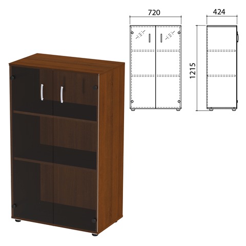 Шкаф закрытый со стеклом "Приоритет", 720х424х1215 мм, 2 полки, ноче милано (КОМПЛЕКТ)