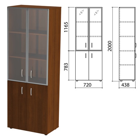 Шкаф закрытый со стеклом в алюминиевой рамке "Приоритет", 720х438х2000 мм, 4 полки, ноче милано (КОМПЛЕКТ)