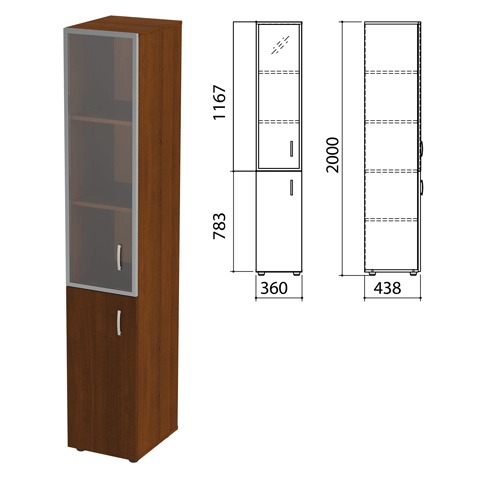 Шкаф закрытый со стеклом в алюминиевой рамке "Приоритет", левый, 360х438х2000 мм, 4 полки, ноче милано (КОМПЛЕКТ)