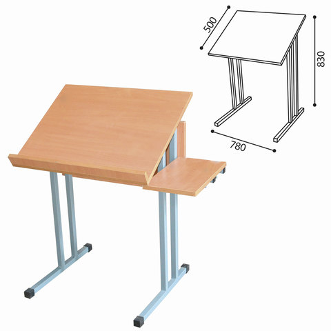 Стол-парта 1-местный для черчения, 780х500х830 мм, рост 6, серый каркас, ЛДСП бук
