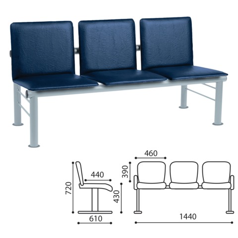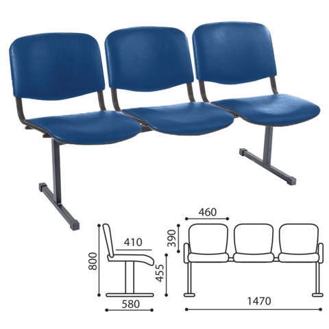 Кресло для посетителей трехсекционное "Трим", черный каркас, кожзам синий