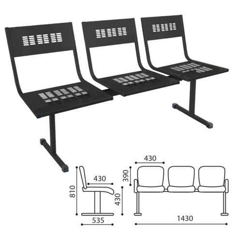 Кресло для посетителей трехсекционное "М-стайл", цвет черный.
