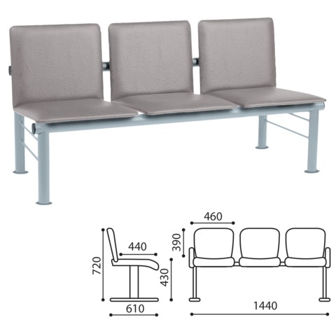 Кресло для посетителей трехсекционное "Стайл", цвет серебристый