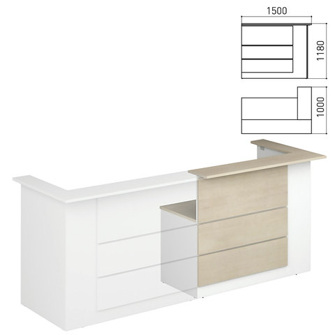 Стойка ресепшн "Профит", 1500х1000х1180 мм, угол левый, дуб шамони/белый (КОМПЛЕКТ)