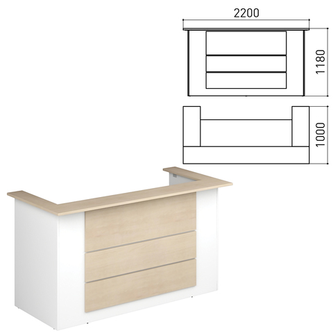 Стойка ресепшн "Профит", 2200х1000х1180 мм, дуб шамони/белый (КОМПЛЕКТ)