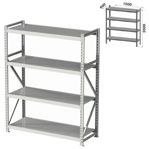 Стеллаж металлический грузовой ПРАКТИК "MS Pro", 2000х1500х600 мм, 4 полки (КОМПЛЕКТ)