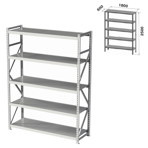 Стеллаж металлический грузовой ПРАКТИК "MS Pro", 2500х1800х600 мм, 5 полок (КОМПЛЕКТ)