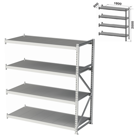 Стеллаж металлический (ПРИСТАВНАЯ СЕКЦИЯ) ПРАКТИК "MS Pro", 2000х1800х800 мм, 4 полки (КОМПЛЕКТ)
