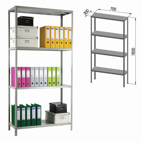 Стеллаж металлический ПРАКТИК "MS KD", сборная стойка, 1850х700х300 мм, 4 полки, MS 185/70х30/4