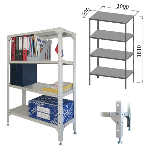 Стеллаж металлический "УНИВЕРСАЛ", 1800х1000х600 мм, УСИЛЕННЫЕ СТОЙКИ, 4 полки, регулируемые опоры, 290350