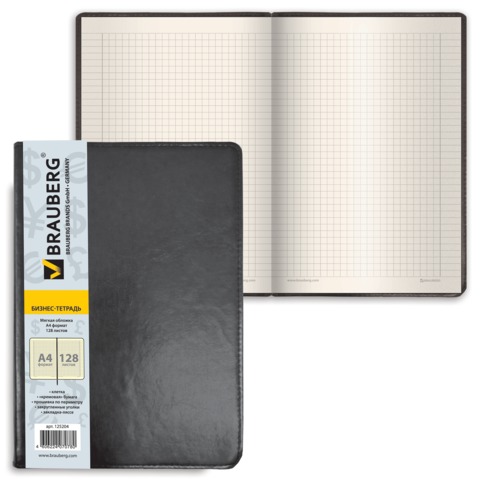 Бизнес-блокнот BRAUBERG, А4, 200х252 мм, "Income", гладкий кожзаменитель, клетка, 128 л., черный, 125204