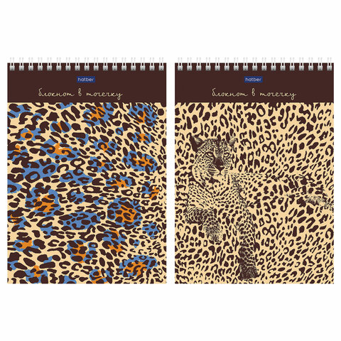 Блокнот А5 (144х208 мм), 60 л., гребень, с подложкой, в точку, HATBER "Premium", "Леопардовый", 60Б5A9гр