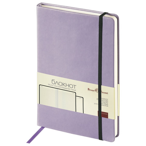 Блокнот А5 (144х212 мм), 100 л., твердая обложка, под кожу "VELVET", на резинке, BRUNO VISCONTI, Сиреневый, 3-525/10