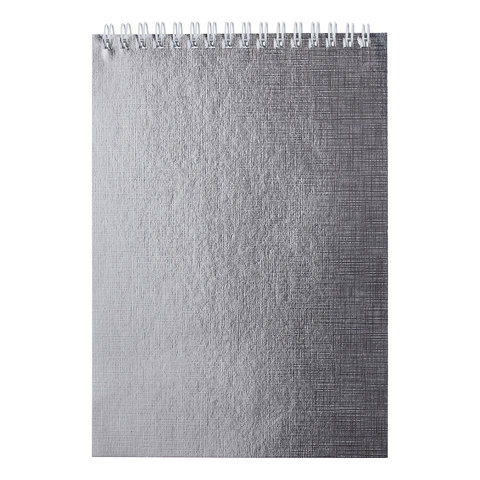Блокнот А5 (145х205 мм), 80 л., гребень, обложка бумвинил, цветной срез, клетка, HATBER, "METALLIC", серебро, 80Б5бвВ1гр