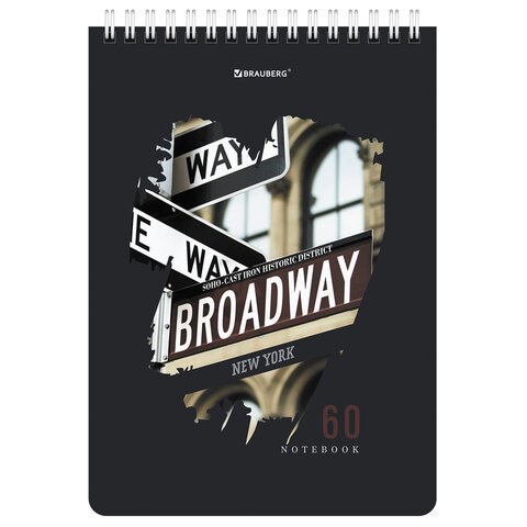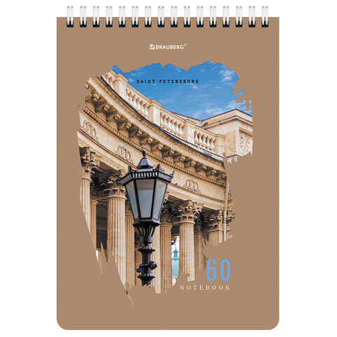 Блокнот А5 (146х206 мм), 60 л., гребень, картон, жесткая подложка, клетка, BRAUBERG, "Города", 114369