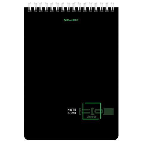 Блокнот А5 (146х206 мм), 80 л., гребень, картон, жесткая подложка, клетка, BRAUBERG, "Dark", 114387