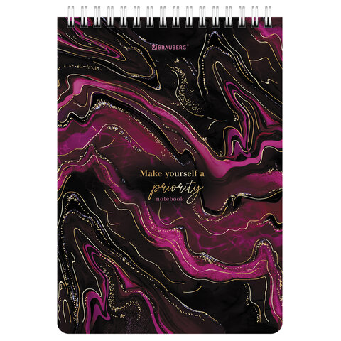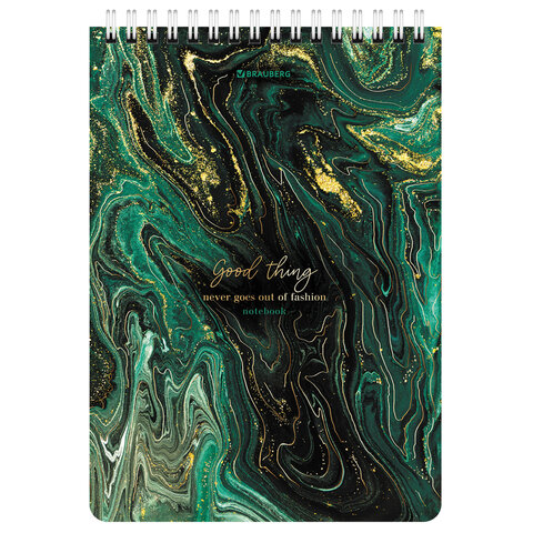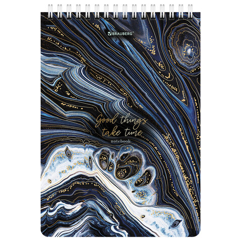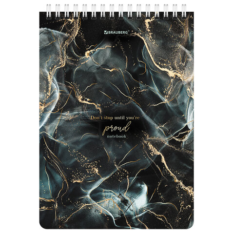 Блокнот А5 (146х206 мм), 80 л., гребень, картон, жесткая подложка, клетка, BRAUBERG, "Marble", 114386