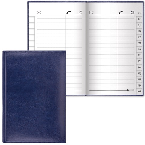 Телефонная книжка А5, 136х202 мм, 96 л., BRAUBERG, вырубной алфавит, "Imperial", под гладкую кожу, темно-синяя, 125040