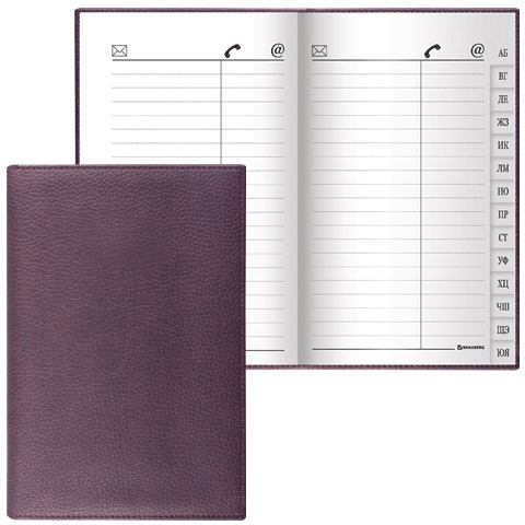 Телефонная книжка А7, 80х130 мм, 56 л., BRAUBERG, вырубной алфавит, "Favorite", под классическую кожу, коричневая, 123509