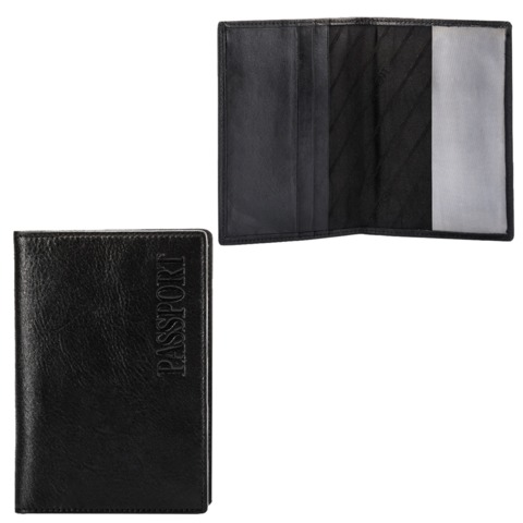 Обложка для паспорта FABULA "Estet", натуральная кожа, тиснение "Passport", черная, O.3.MN