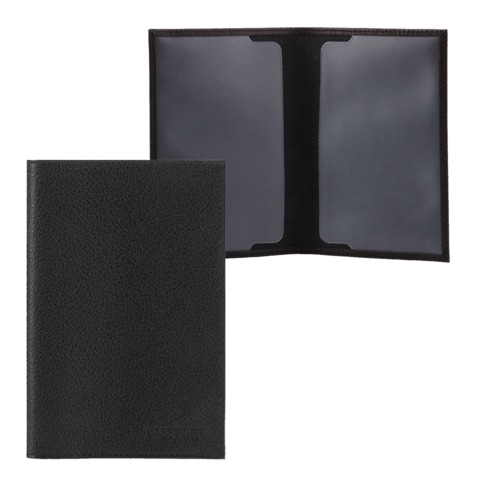 Обложка для паспорта выполнена из натуральной кожи. На внутреннем развороте 2 кармана из прозрачного пластика. Отличительная черта: оригинальная фактурная кожа, тиснение «Passport».