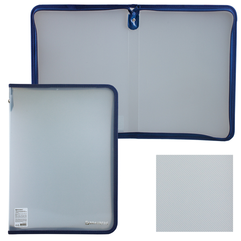 Папка на молнии пластиковая, А4, объемная, 335х240х20 мм, прозрачная диагональ, BRAUBERG, Россия, 226036