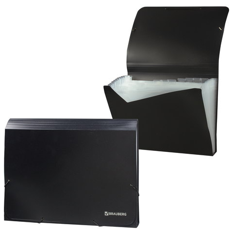 Папка на резинках BRAUBERG, А4, 13 отделений, пластиковые индексы, черная, Россия, 226020