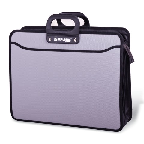 Портфель пластиковый BRAUBERG портфолио, А3, 470х380х130 мм, 3 отделения, на молнии, серый, 223080